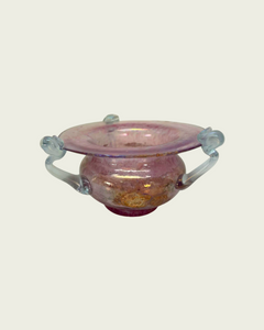 With violet body and baby blue hanger arm details. With the Scavo effect, giving the bowl the ancient Roman glass feeling. Murano label on underside.