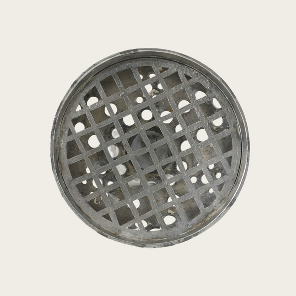 1930s, Denmark. This Art Deco pewter piece, model 841, features a detailed cherub holding blackberries. Designed and stamped by Just Andersen, it carries the maker’s mark on the underside. The piece combines decorative sculpture with practical function as a flower frog.