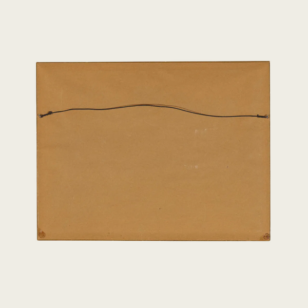 Untitled oil paint on board depicting a vibrant Parisian nightlife scene, in a beaded decorative frame with museum glass. Raymond Houlihan was assigned as a combat soldier to a front-line armored division in Europe during World War II. There, he sketched real-time accounts of what he witnessed. After the war, Houlihan continued to paint and sketch people in city scenes such as Paris and New York City. he also became a famed newspaper cartoonist. Matted and framed in a painted wood frame with glass. Signed “R. Houlihan” on bottom right corner. Undated.
