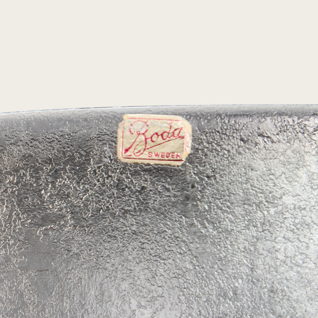 This piece dates back to 1950s Sweden and features ribbed, scalloped hanger details. It includes a Kosta Boda label attached to the side.