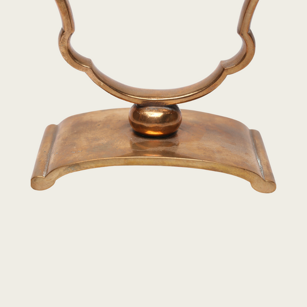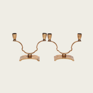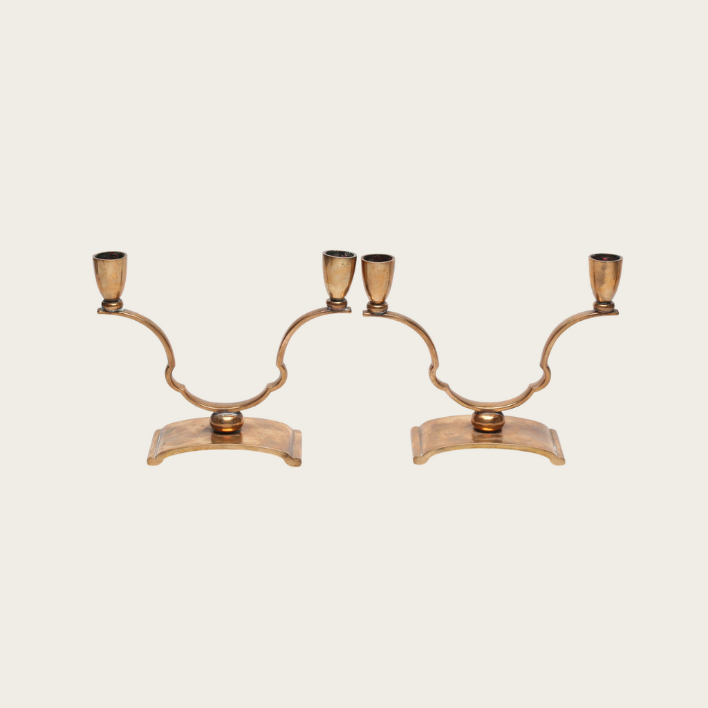 1920s, Sweden. Pair of Art Deco polished bronze candlesticks features elegant sculptural curves on curved bases. Designed by Sune Bäckström, Model 9094, each candlestick is numbered and marked by the maker on the underside.
