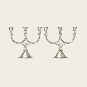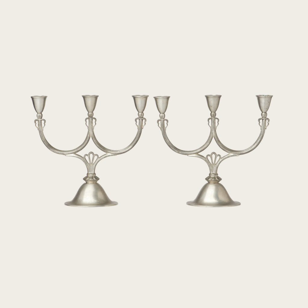 1931, Denmark. Just Andersen maker's mark on the underside. Each piece has a placement for three candles. Sold as a pair.