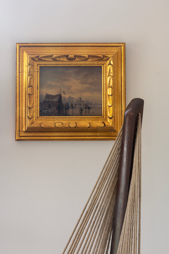 Early 1900's Oil Painting of Netherlands Winter Landscape Attributed to Salomon van Ruysdael