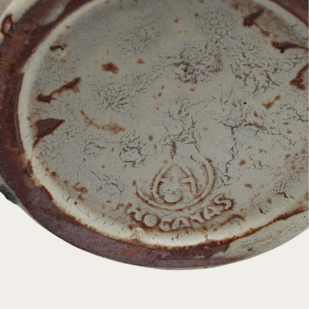1930s, Sweden. Blue, cream, and rust colored glaze. Marked on underside.