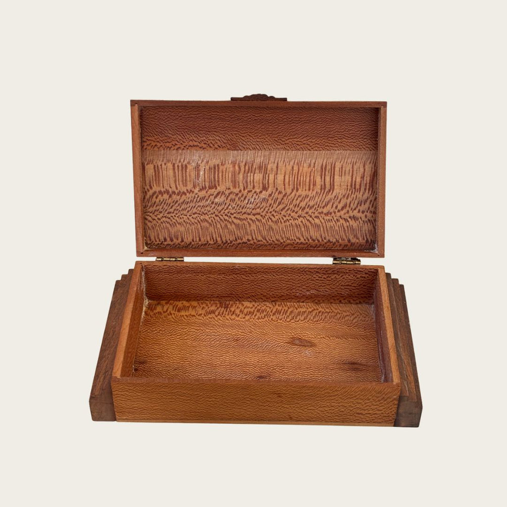 1930s, France. This Art Deco box showcases the beauty of solid birdseye maple, featuring distinctive stepped detailing. The wood's grain patterns create visual depth and character.