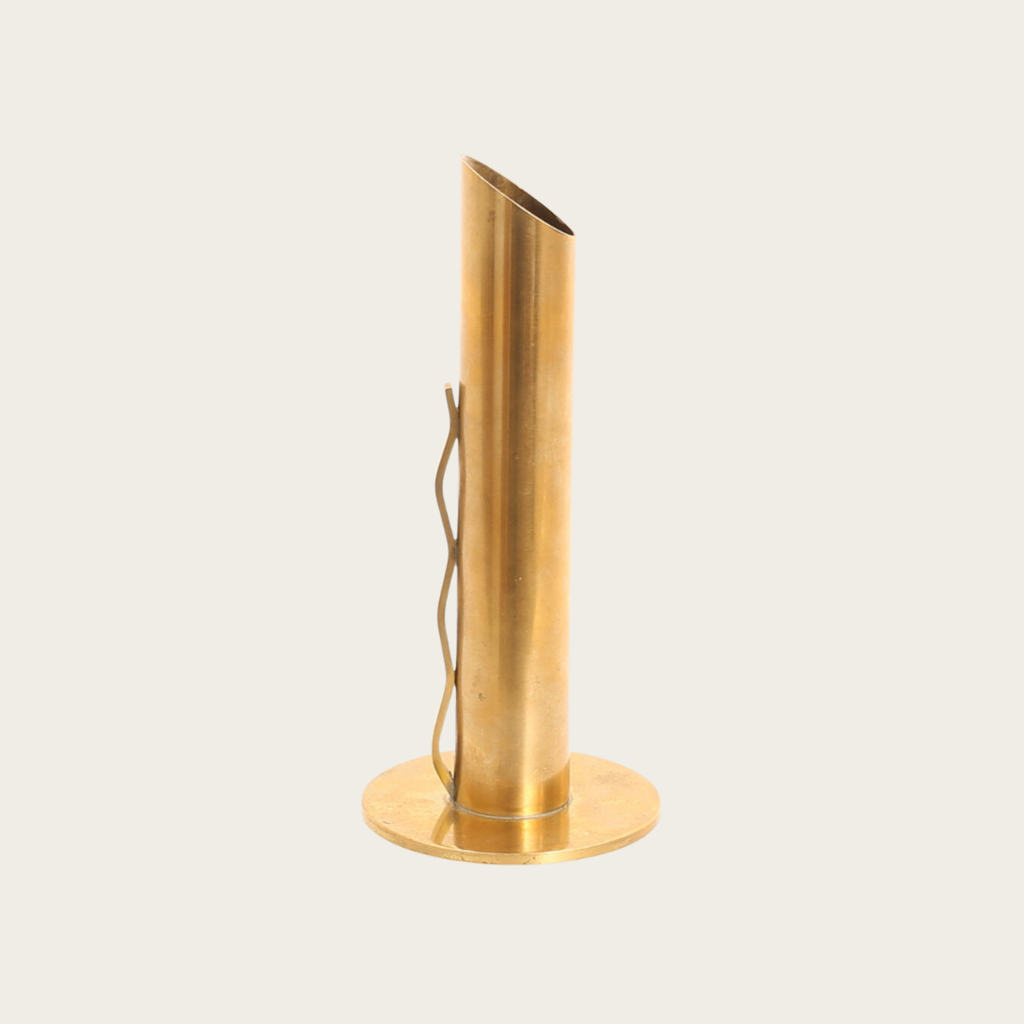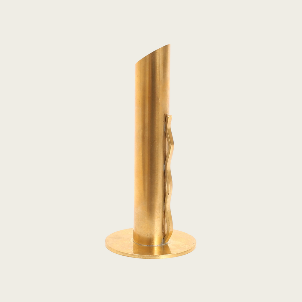 Swedish Brass Bud Vase or Candle Holder With Squiggle Detail