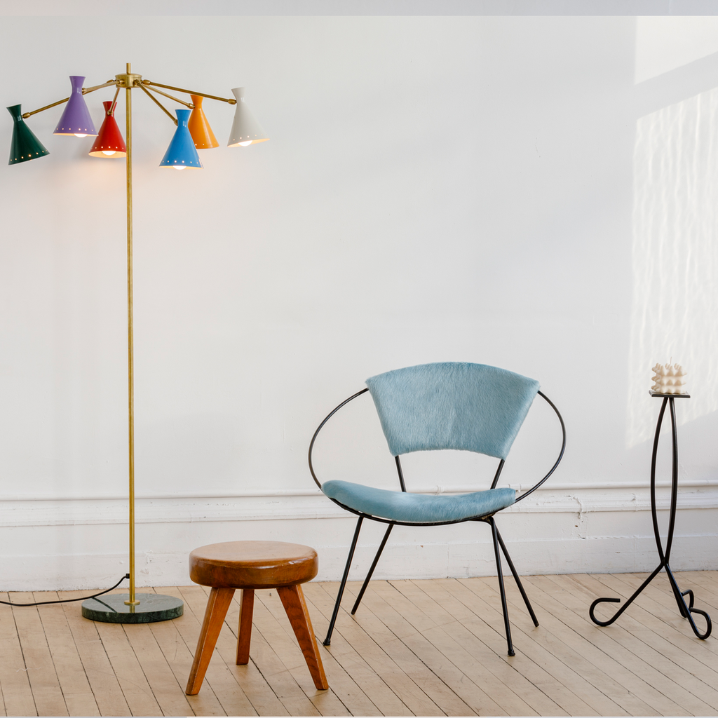 1950’s Italian Wrought Iron candle stand, perfect for displaying round or square candles. In excellent condition, newly restored with a fresh matte powder coat.This piece adds playful shape and bold drama to any space.