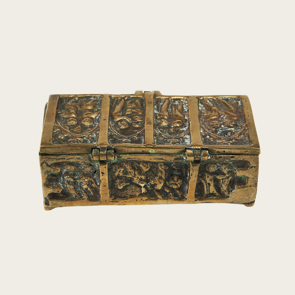 1950s Patinated Brass Relief Box