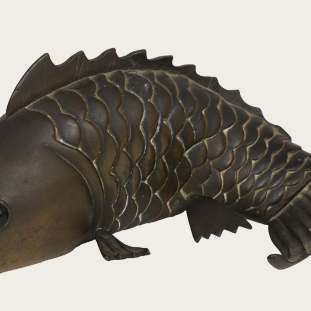 1950s Sculpture of Solid Bronze Carp with Glass Eyes