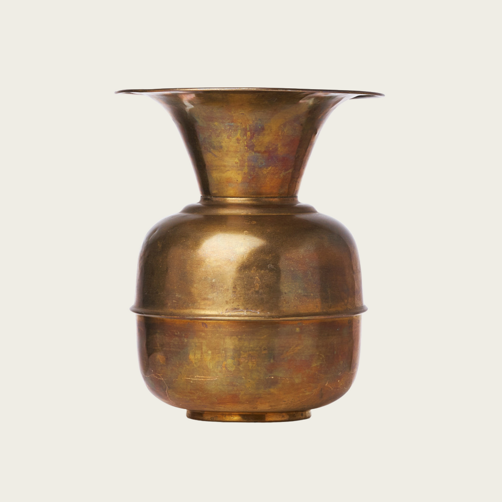 1960s, Mexico. Brass vessel featuring a flared rim. Although the artist is unknown, it has a solid brass construction and an elegant form.