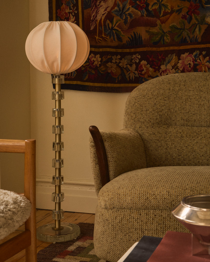 1960's Swedish Glass and Brass Floor Lamp by Carl Fagerlund for Orrefors