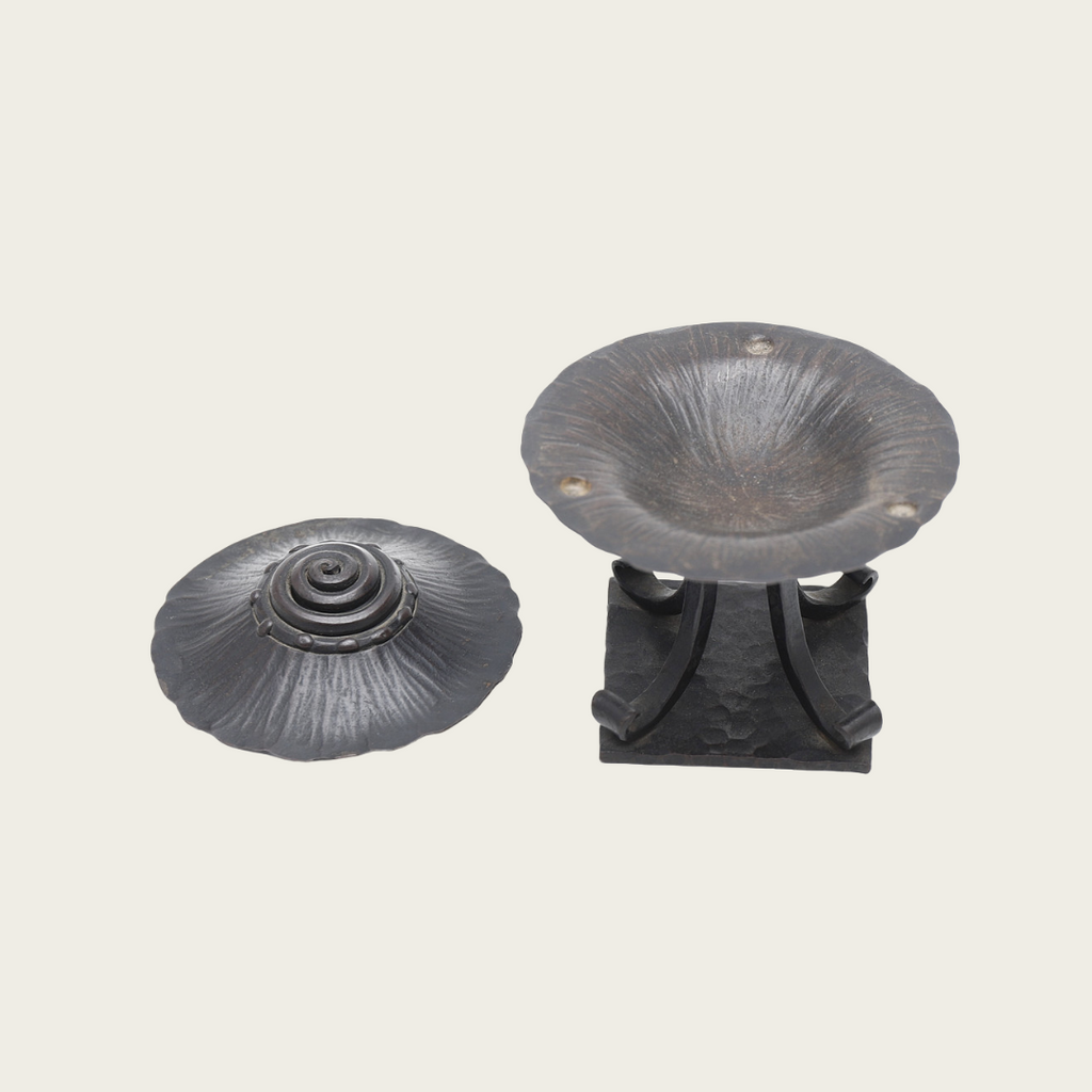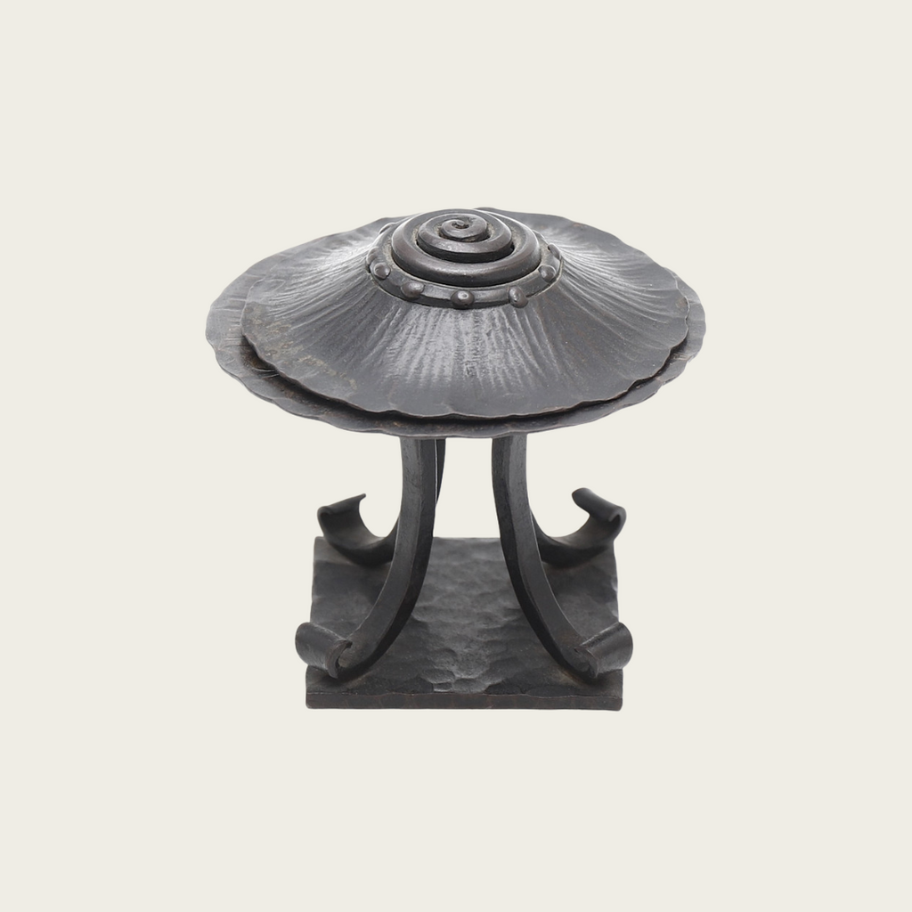 Featuring a nautilus spiral design on the lid and curved legs, this incense burner is marked "Paris" on the bottom.
