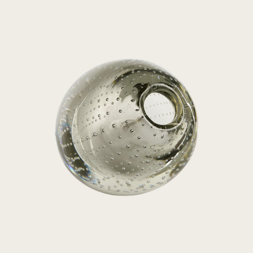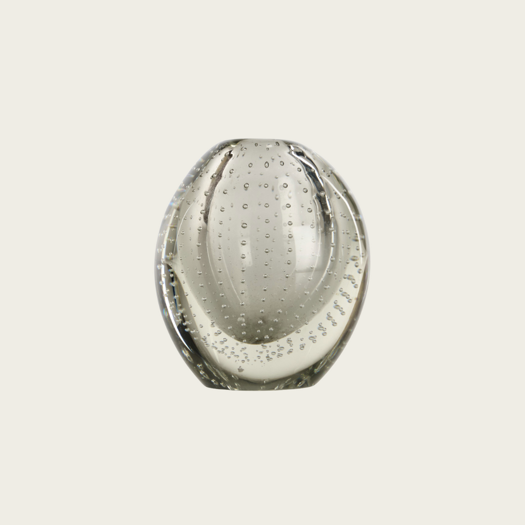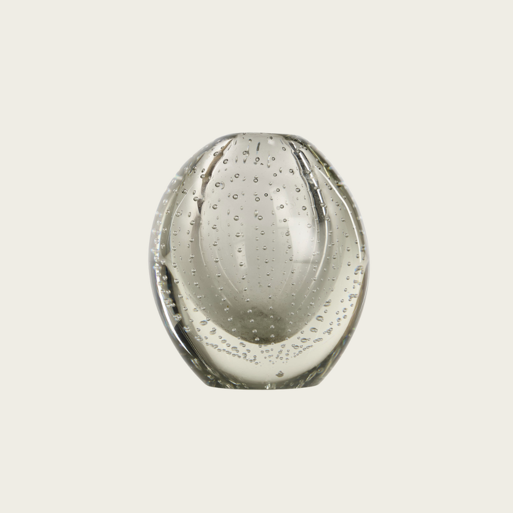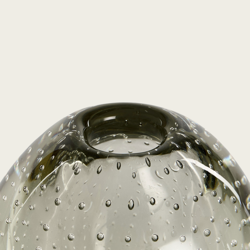 1950s, Finland. This vase from Humppilan Lasi features a distinctive bulbous shape with a hand-blown air bubble pattern. It is signed on the underside.
