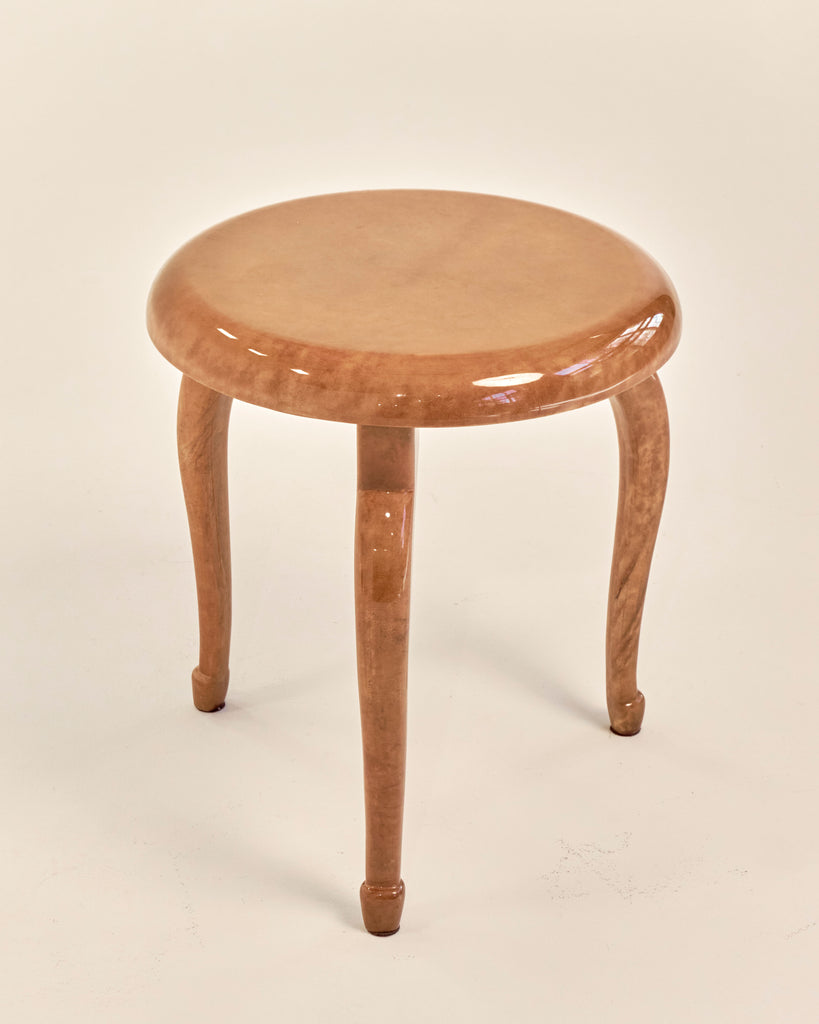 Extremely rare Aldo Tura art deco lacquered wood and goatskin occasional/side table with rounded tapered legs, Italy 1950’s. In excellent condition, no chips.