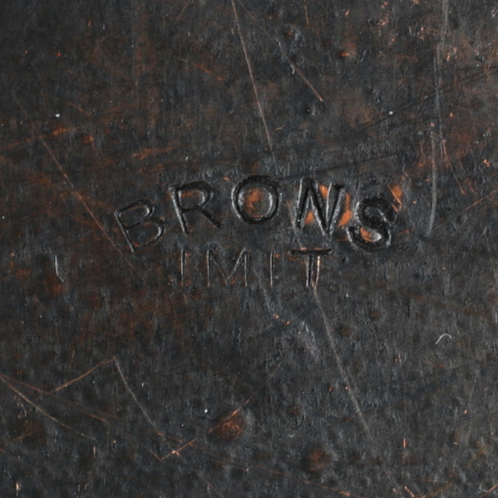 1930s Sweden. Featuring a sculptural detail of a woman figure. Marked “Brons.”