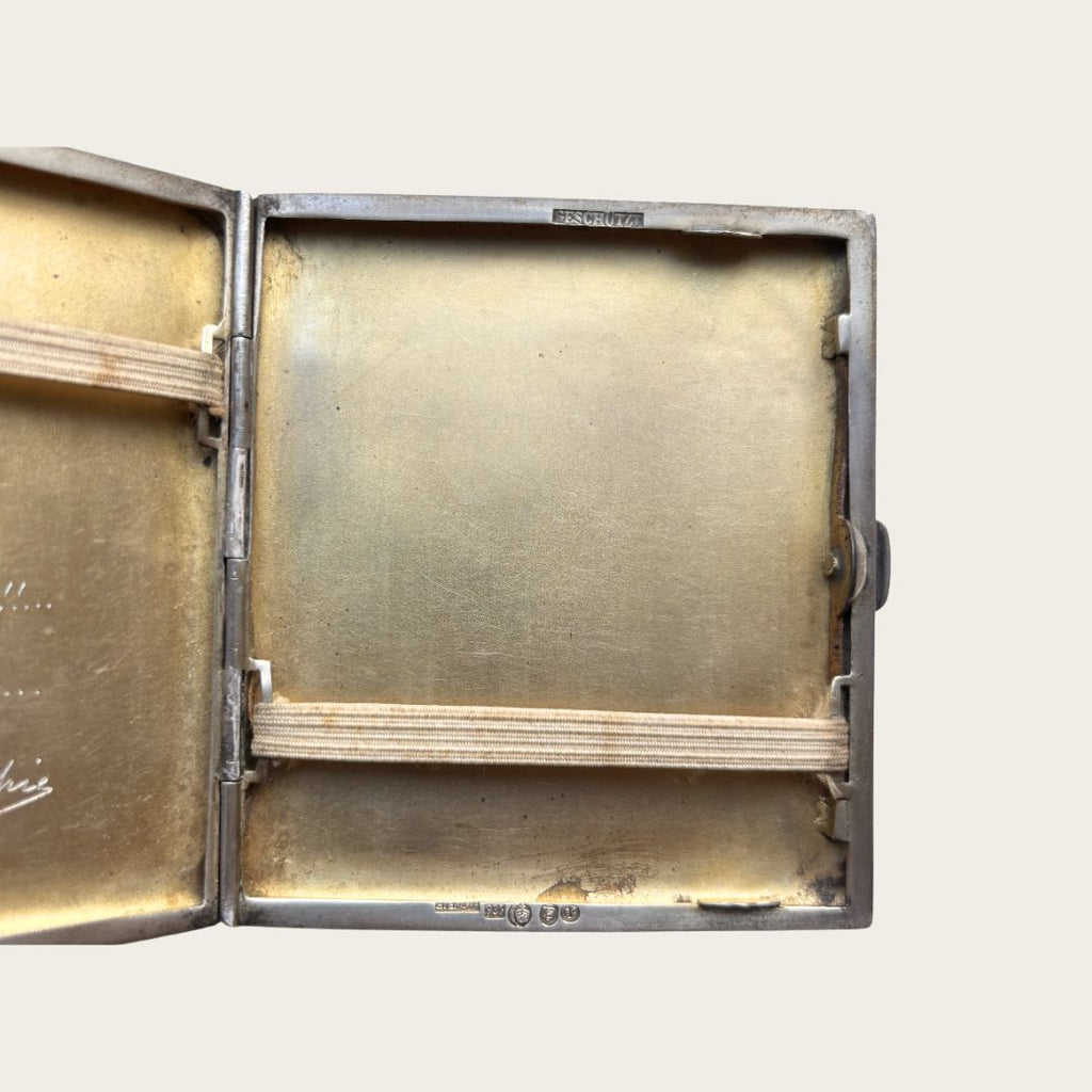 Crafted from authentic sterling silver and marked with the 925 hallmark, this Art Deco case bears an intimate German inscription inside: "No, I Don't Know, Maybe, Sophie." Whether used for cards or cigarettes, it combines practical functionality with sentimental appeal.