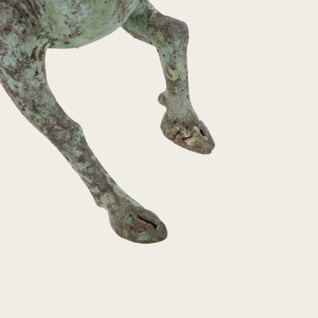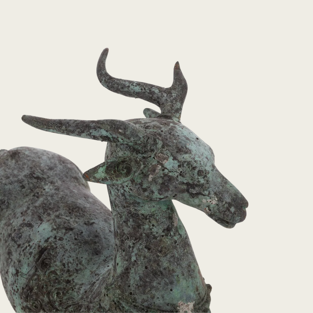 This Chinese Archaic Style Cast Metal Deer is made from a copper alloy, featuring traditional design elements inspired by ancient Chinese art.