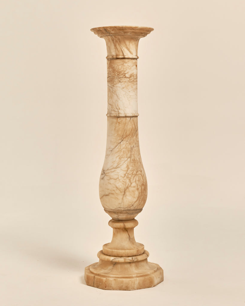 With a turned vase formed center post and an octagonal base. Minor Flea-chip to edge
