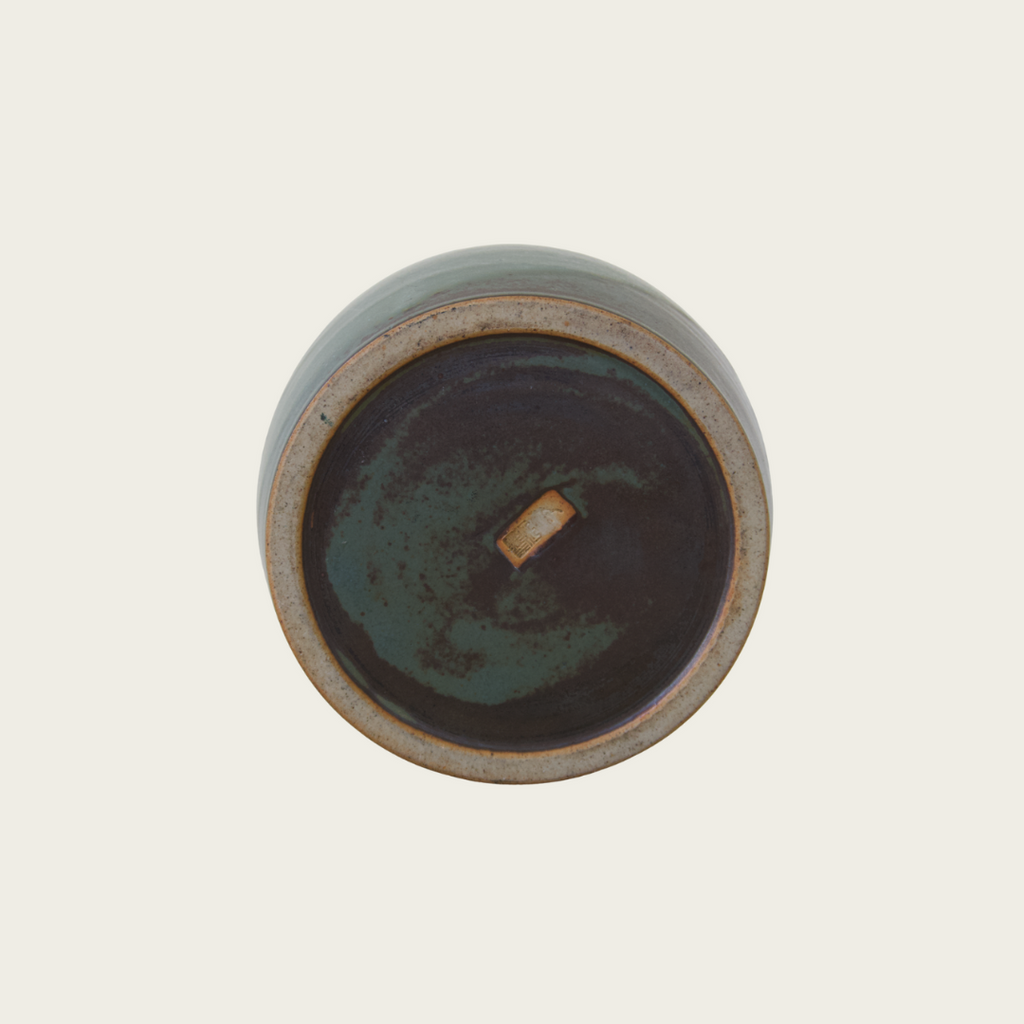 1950s Japanese Ceramic Vase With Yellow Green Glaze