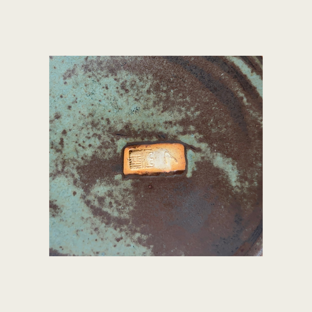 1950s, Japan. With two decorated floral spiral handles to the neck. Stamped by an unknown artist's signature on underside.