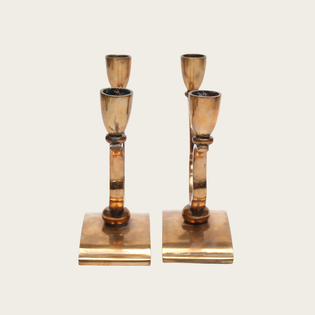 Pair of 1920s Swedish Sune Bäckström Model 9094 Art Deco Polished Bronze Candlesticks