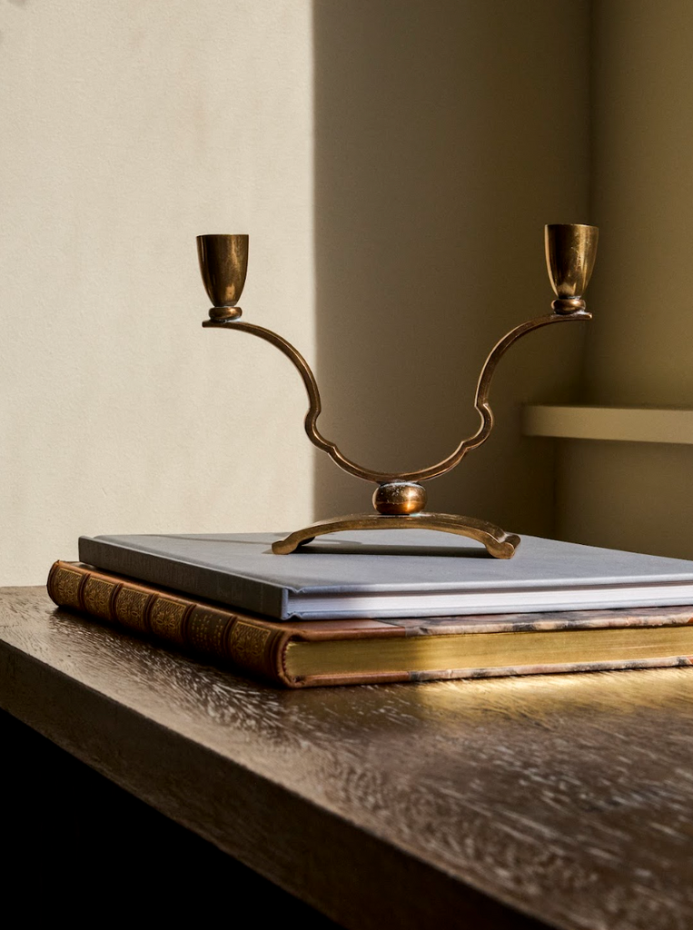 1920s, Sweden. Pair of Art Deco polished bronze candlesticks features elegant sculptural curves on curved bases. Designed by Sune Bäckström, Model 9094, each candlestick is numbered and marked by the maker on the underside.
