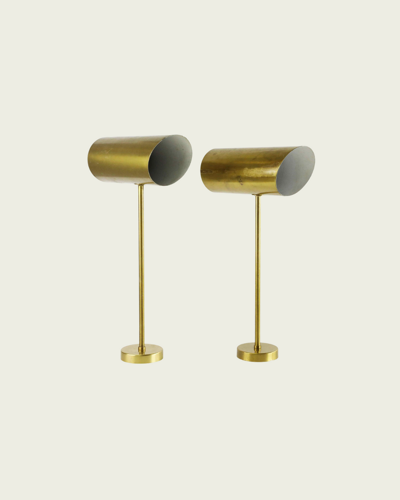 1960s/70s. This pair exhibits wear such as patina, marks, and scratches on the fenders. One of the lamp holders is missing its outer part.