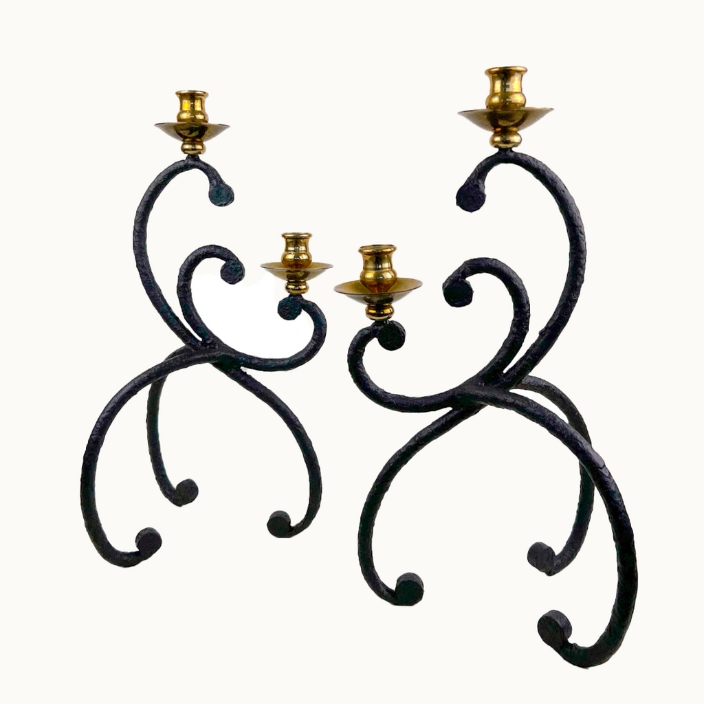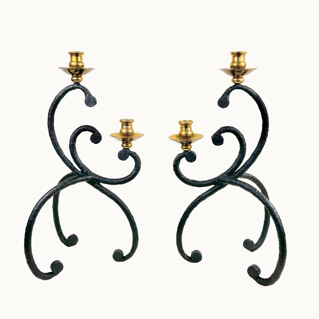 Pair of Bronze and Lacquered Iron Art Nouveau Candleholders