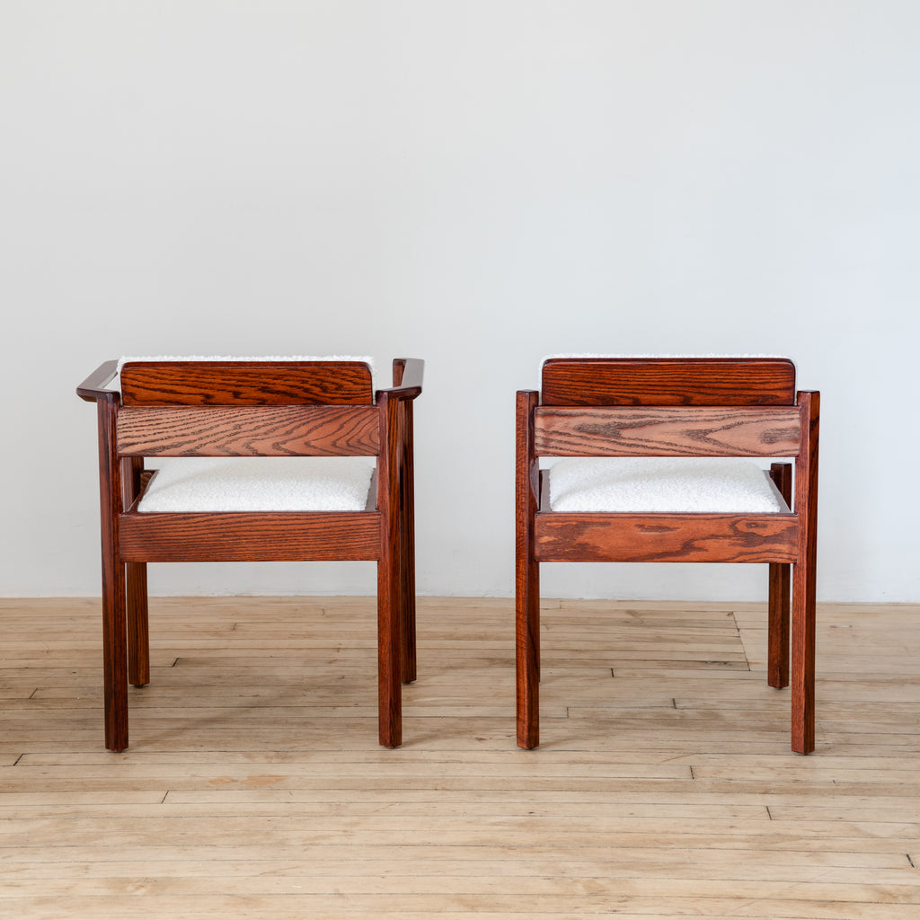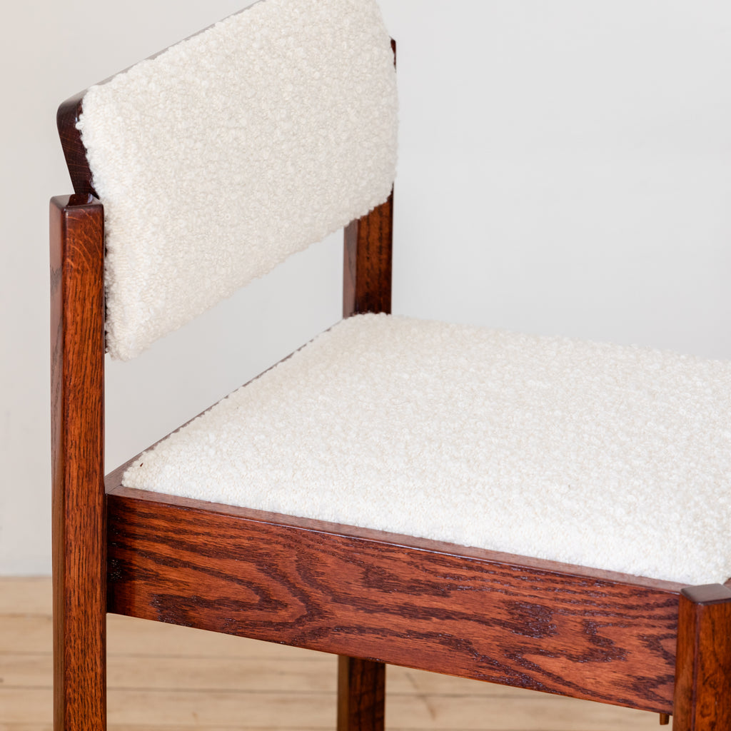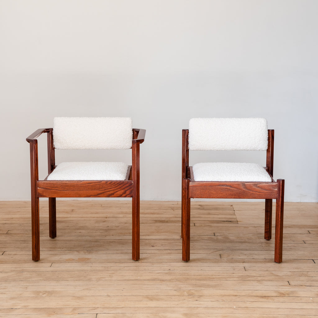 Pair of Newly Restored 1960's Danish Walnut and Cream Alpaca Wool Boucle Chairs
