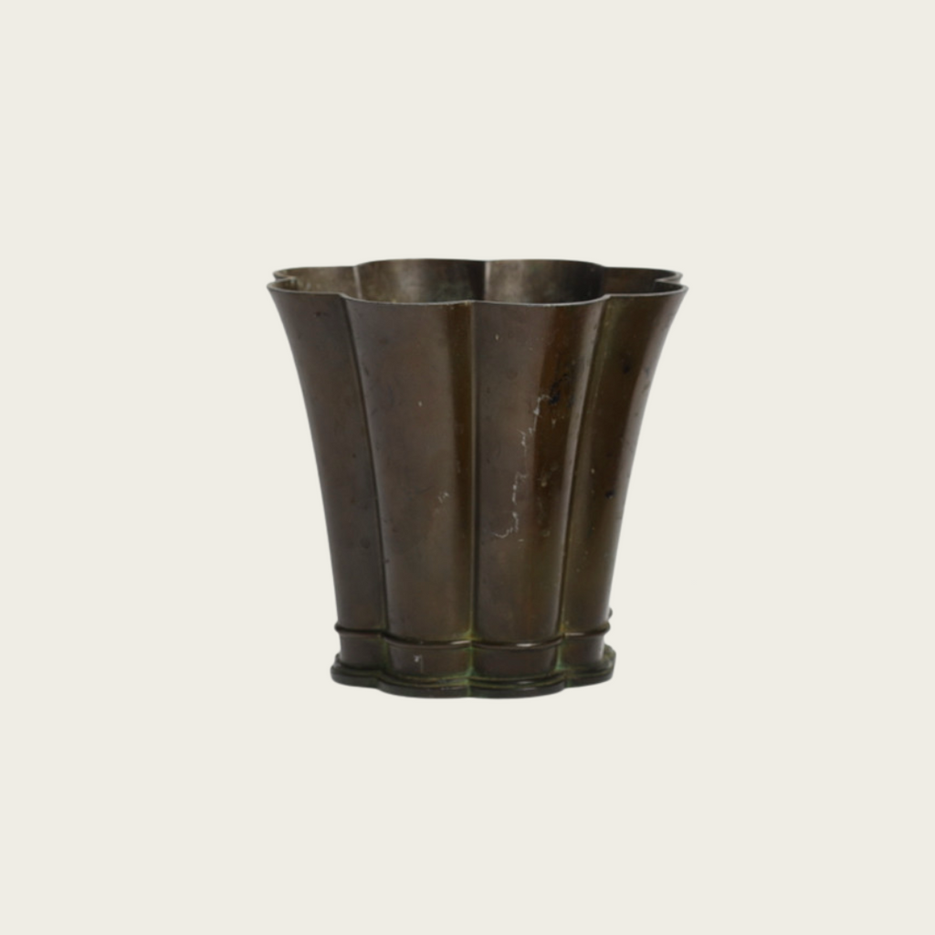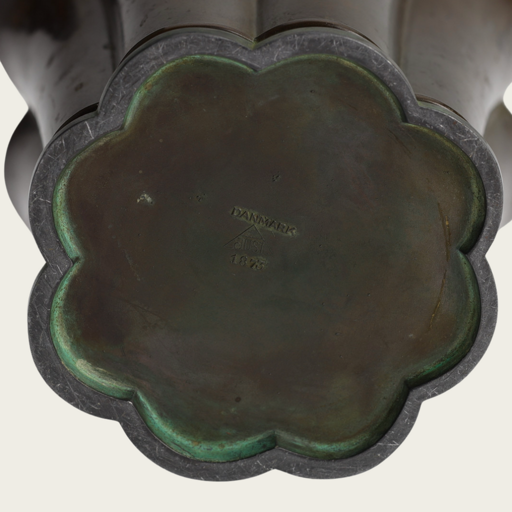 1940s, Denmark. Art Deco patinated bronze vase with scalloped form by Just Andersen. Stamped with maker’s mark on underside.