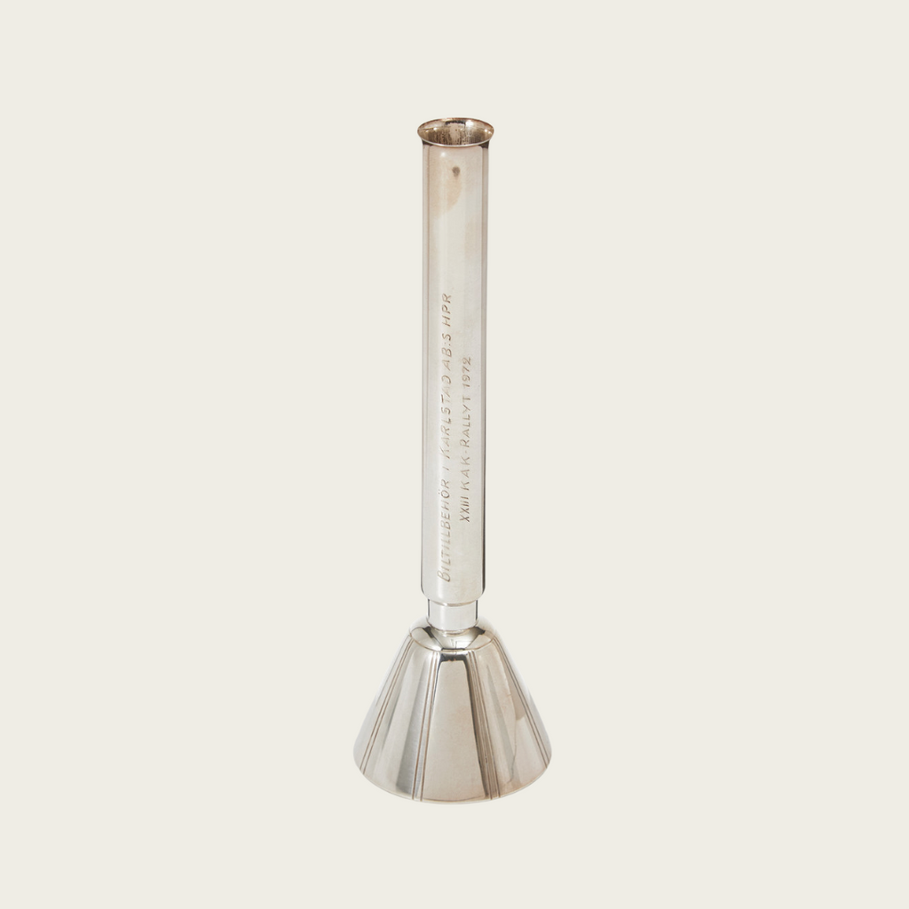 1957, Sweden. Silver plated bud vase with engraving on side & CGH mark on base.