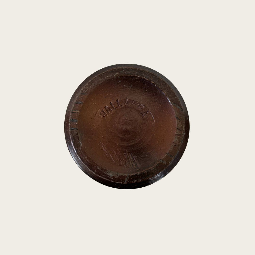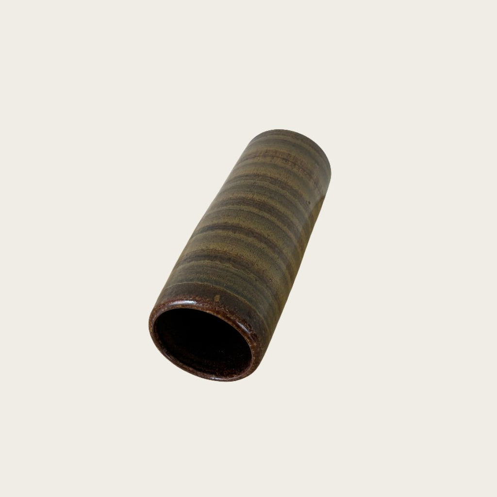 1930s, Sweden. Glazed stoneware vase by Arthur Anderssen, made for Wallåkra, features a distinctive striped glaze that adds subtle texture and visual interest. Tagged “AWA Wallåkra” on the underside.