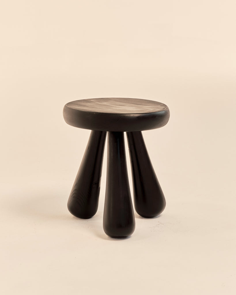 1990's Swedish ebonized pine foot stool with three rounded legs and a curved edge seat. In excellent condition.